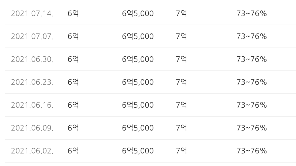 작년 6월즈음 샀다는 말이있는데 그때는 6억 원 정도의 실거래가가 올라와 있다.
