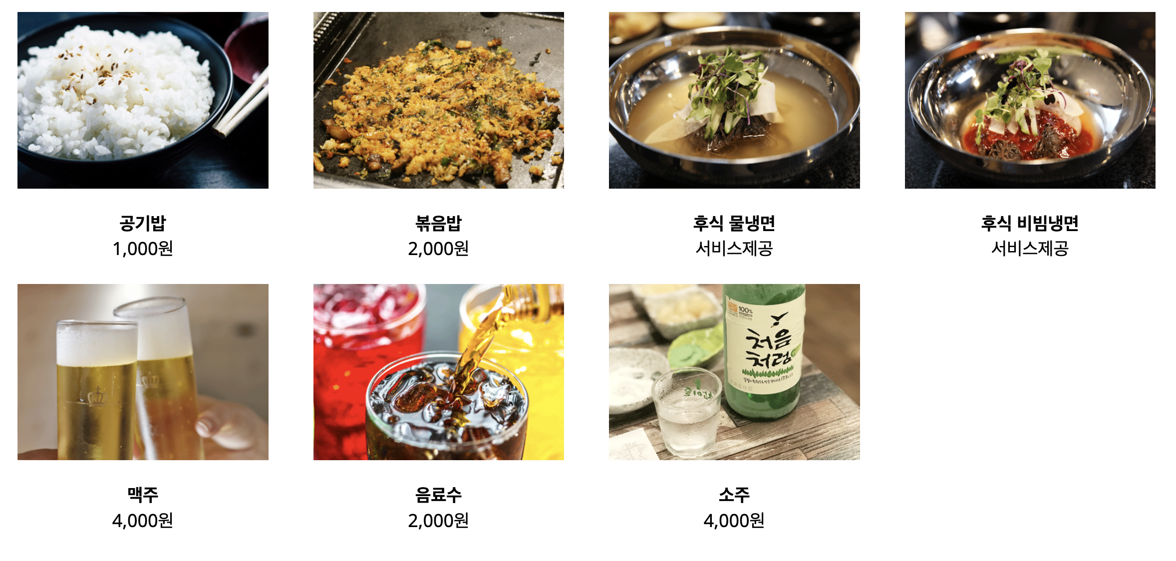 메뉴 및 가격