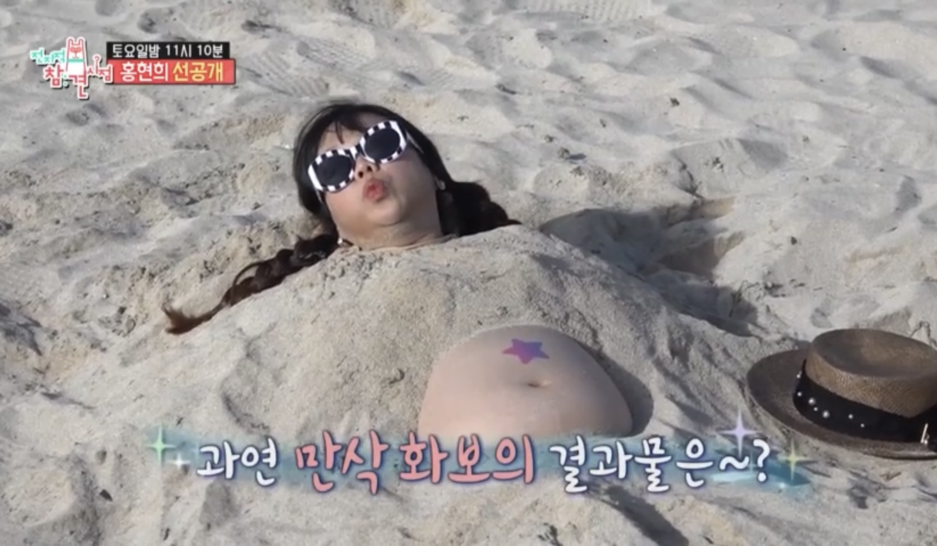 고운 모래사장과 촬영을 위해 준비한 선글라스가 잘 어울린다.