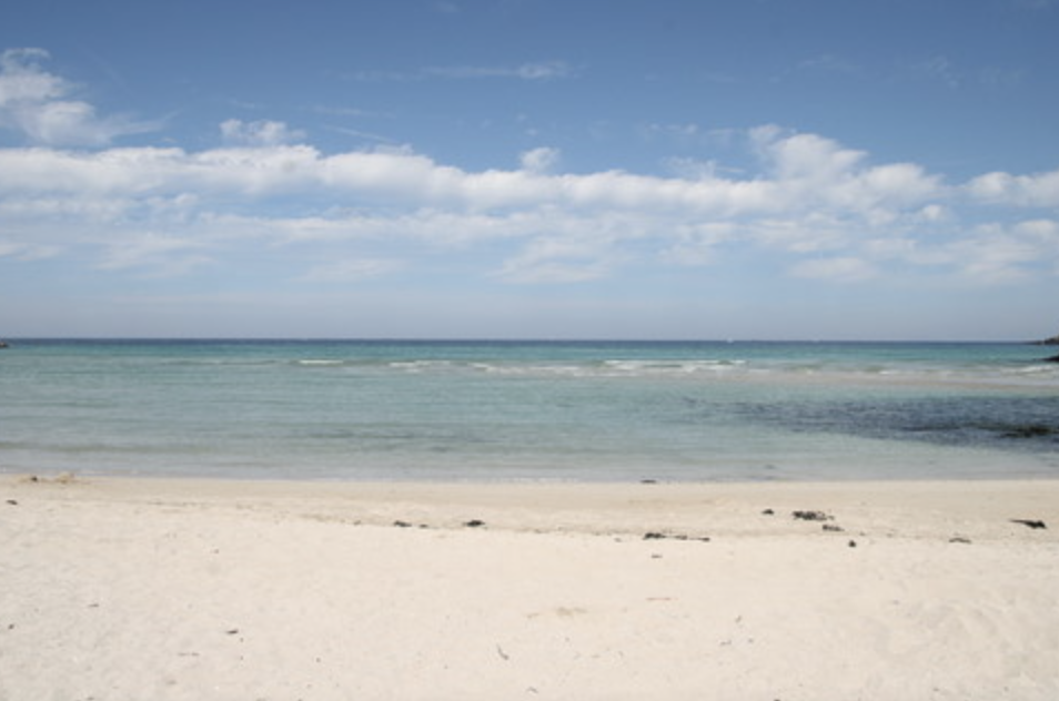 푸른 바다와 고운 모래가 인상적인 곳은 제주도 함덕해수욕장.