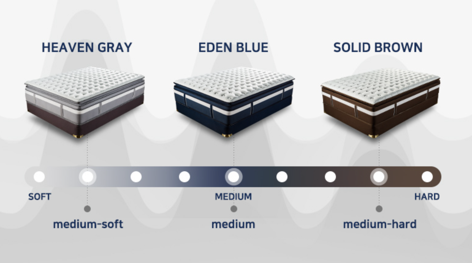 최적의 편안함을 위해 시리즈별로 3가지 경의 매트리스를 제공하고 있다.
