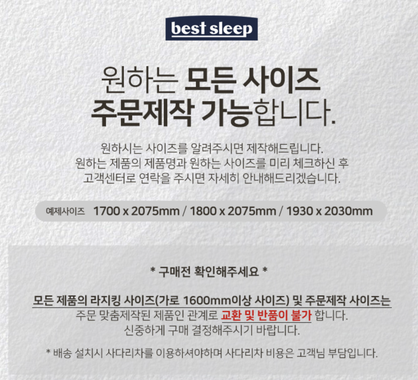 원하는 사이즈를 체크 후 고객센터 1522-7247로 주문 제작이 가능하다.
