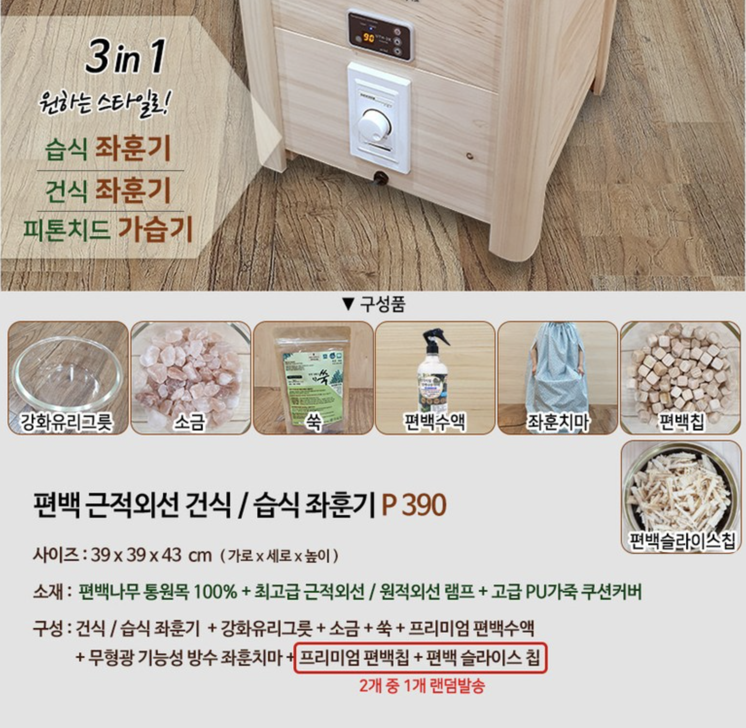 김주희 솔깃 / 편백 근적외선 건식/습식 좌훈기 P390 / 편백 좌욕기 / 쑥 좌훈기 / 소금 좌훈기 / 민